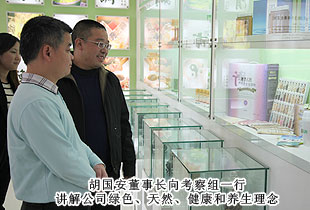 考察過(guò)程中,湖南省工商局副局長(zhǎng)陳躍文、湖南省網(wǎng)商協(xié)會(huì)秘書長(zhǎng)一行首先參觀了綠之韻集團(tuán)總部、產(chǎn)品展示廳和科技展示中心及五星級(jí)酒店沙盤。胡國(guó)安董事長(zhǎng)就公司產(chǎn)品、產(chǎn)學(xué)研合作、公益慈善和未來(lái)規(guī)劃等相關(guān)情況進(jìn)行了簡(jiǎn)短介紹,各位領(lǐng)導(dǎo)邊走、邊聽、邊仔細(xì)詢問(wèn),頻頻點(diǎn)頭以示高度肯定和贊許。