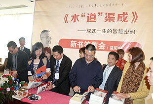 2013年11月16日,胡國安董事長應(yīng)廣大讀者、粉絲的強(qiáng)烈要求,現(xiàn)身湖南益陽參加《水“道”渠成》讀者簽售見面會,1000多名鐵桿擁躉很早就在簽售儀式現(xiàn)場排起了長龍,爭相一睹“水文化”之集大成者董事長胡國安先生的風(fēng)采,不到兩個小時1000多冊《水“道”渠成》瞬間售罄。