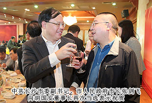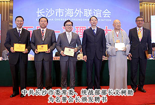 湘江起歌聲,星城迎佳賓。2013年10月21日—22日,長沙市海外聯(lián)誼會五屆一次理事大會在長沙時代帝景大酒店成功舉行。中共長沙市委副書記、市人民政府市長張劍飛,中共湖南省委統(tǒng)戰(zhàn)部副部長陳瀟,長沙市人大常委會主任袁觀清,中共長沙市委常委、市人民政府副市長張迎春等省市領(lǐng)導、200多位理事會全體理事蒞臨現(xiàn)場;湖南省政協(xié)委員、長沙市工商聯(lián)(總商會)副主席、長沙市海外聯(lián)誼會第四屆理事會副會長、綠之韻集團董事長胡國安受邀與會,并再次成功當選長沙市海外聯(lián)誼會第五屆理事會副會長;長沙市政協(xié)委員、綠之韻集團營銷副總裁張曉琴當選常務理事。本次會議由中共長沙市委統(tǒng)戰(zhàn)部副部長、市僑聯(lián)黨組書記王國平主持。
