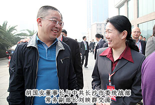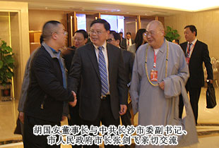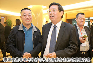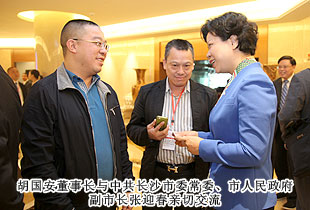 聯(lián)絡友誼,促進合作;加強溝通,提供服務。本次會議開設(shè)了“長沙海聯(lián)投資創(chuàng)業(yè)論壇”板塊,對了長沙市重大項目進行了集中推介。在嘉賓訪談環(huán)節(jié),胡國安董事長受邀參與座談,同省市領(lǐng)導、部分嘉賓面對面進行了親切交流。長沙市海外聯(lián)誼會第五屆理事會顧問中共長沙市委副書記、市人民政府市長張劍飛,長沙市海外聯(lián)誼會第五屆理事會會長中共長沙市委常委、統(tǒng)戰(zhàn)部部長文樹勛向胡國安董事長再次當選副會長表示衷心的祝賀,對胡國安董事長在第四屆理事會任職期間,為長沙海外聯(lián)誼事業(yè)的成長進步、為長沙發(fā)展所付出的心血和作出的貢獻給予肯定和高度評價,真誠期盼胡國安董事長一如既往地做好長沙海外聯(lián)誼工作,繼續(xù)發(fā)揮影響和作用,與新一屆理事會全體理事一道,共同為推進長沙海外聯(lián)誼事業(yè),為實現(xiàn)長沙“小康夢”、“兩型夢”、幸福夢”作出新的貢獻!
