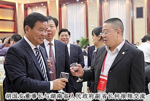 中共湖南省委書記、省人大常委會主任徐守盛對本次大會的召開高度重視。他在賀信中說,廣大湘商是湖南彌足珍貴的一張亮麗名片。當前,湖南正處于全面深化改革開放和全面建成小康社會的關(guān)鍵時期,我們將認真貫徹落實黨的十八大精神,以提高經(jīng)濟增長質(zhì)量和效益為中心,大力促進“三量齊升”,全面推進“四化兩型”、“四個湖南”建設(shè),加快實現(xiàn)湖南的“小康夢”、“兩型夢”、“崛起夢”,奮力譜寫中國夢的湖南篇章。相信一個持續(xù)健康發(fā)展、加速開放崛起的湖南,必將為包括湘商在內(nèi)的海內(nèi)外投資者創(chuàng)造更多機會,帶來豐厚回報。湖南將認真落實中央大政方針和部署要求,一如既往地支持湘商創(chuàng)新創(chuàng)業(yè)、發(fā)展壯大。希望廣大湘商繼續(xù)為家鄉(xiāng)的建設(shè)發(fā)展獻計出力,帶動更多的海內(nèi)外客商來湘投資興業(yè),帶動更多的優(yōu)質(zhì)資源要素聚集湖南,實現(xiàn)互利共贏,成就事業(yè)夢想,共創(chuàng)美好未來。