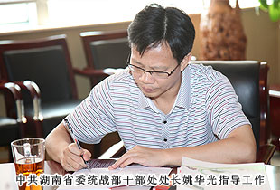 為了更好引導(dǎo)非公有制企業(yè)又好又快發(fā)展,破解企業(yè)發(fā)展中的瓶頸和難題,迅速融入“四化兩型”戰(zhàn)略,為湖南經(jīng)濟社會發(fā)展作出貢獻(xiàn),2013年9月9日,中共湖南省委統(tǒng)戰(zhàn)部常務(wù)副部長譚平、中共湖南省委統(tǒng)戰(zhàn)部干部處處長姚華光一行蒞臨綠之韻集團(tuán)考察調(diào)研。本次考察調(diào)研以中共湖南省委統(tǒng)戰(zhàn)部、省工商聯(lián)聯(lián)合發(fā)起的“萬企聯(lián)村?共同發(fā)展”活動為載體,深入調(diào)研了綠之韻集團(tuán)的經(jīng)營現(xiàn)狀。綠之韻集團(tuán)董事長胡國安、綠之韻集團(tuán)市場營銷中心(中國區(qū))副總經(jīng)理諶獻(xiàn)軍、綠之韻集團(tuán)黨總支書記許達(dá)仲等全程陪同調(diào)研。
