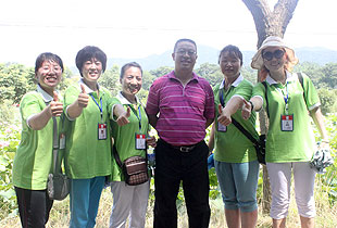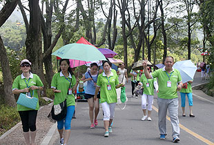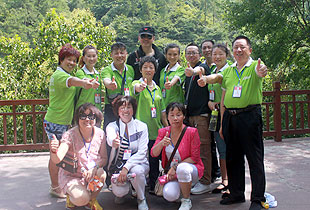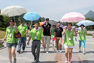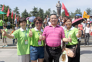 上午10時,綠之韻營銷精英2013韶山紅色之旅一行抵達了魂牽夢繞的美麗韶山。第一站,來到毛澤東銅像廣場,瞻仰偉大的毛主席。毛主席銅像立于高高的紅色花崗巖石基座上,背靠韶峰,主席身軀偉岸,手握書卷,雙眼炯炯有神,面帶微笑地注視著廣場,注視著遠方,仿佛在歡迎遠來的客人和世界各地的朋友,主席又似乎停步思考著天下的大事,一派學者風范。胡國安董事長不畏炎熱,百忙之中驅車來到偉人故里,來到綠之韻伙伴們身邊,追憶往昔,敘說衷腸,暢享夢想,伙伴們興奮不已、激情四溢,整齊有序排好隊列和胡國安董事長一一合影留念。接著,在胡國安董事長的引領下,大家懷著無比崇敬的心情向毛主席的銅像獻花、敬禮,向毛主席三鞠躬,像全國各地奔向韶山沖的人們一樣,通過這種最傳統的方式來祝福、紀念、緬懷……站在巨大的塑像腳下,一種自豪而激動地情懷油然而生,綠之韻們伙伴們不禁讓我想起毛主席那豪邁飄逸的詩篇《沁園春?雪》:“數風流人物,還看今朝”。