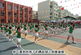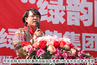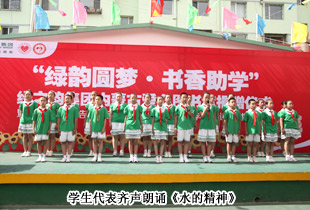 內(nèi)蒙古呼和浩特回民區(qū)通道街回族小學(xué)作為綠之韻“樹人行動”定點支教學(xué)校,校園文化建設(shè)、校本課程開發(fā)及辦學(xué)特色的打造一直受到綠之韻集團的關(guān)注。在綠之韻的幫助和影響下,通道街回族小學(xué)獨辟蹊徑,彰顯特色,將與綠之韻一脈相承的“水的精神”根植于學(xué)校德育的沃土,引進了民族企業(yè)綠之韻健康理念和綠色健康操,形成了《民族區(qū)域》、《民族建筑》、《民族服飾》、《民族禮儀》、《民族飲食》系列德育校本教材,并開發(fā)了獨具特色的綠色健康教育校本《中華五千年養(yǎng)生文化》和《中華五千年水文化》。目前,這套教材正在申報全國“十一五”德育課題優(yōu)秀成果獎。在現(xiàn)場,學(xué)生代表們用稚氣而嘹亮的嗓音齊聲朗誦“水的精神”,朝氣蓬勃地跳著歡快動感的健康操,向與會領(lǐng)導(dǎo)和愛心人士們展示著校本課程的成果。