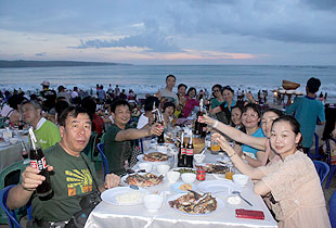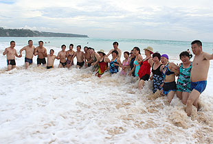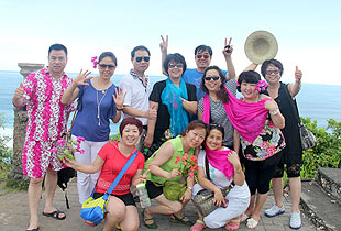 為什么要去海邊?常見(jiàn)的說(shuō)辭,比如,看海灘,吃海鮮,聽(tīng)海浪,吹海風(fēng)。再比如,思考人生,探索宇宙,審視過(guò)去,展望未來(lái)。綠之韻人的理由比較簡(jiǎn)單,尋找快樂(lè),享受事業(yè)帶來(lái)的高品質(zhì)生活。南灣,是巴厘島南端最著名的水上活動(dòng)集中區(qū)域。迎著海闊天藍(lán)及潔白柔細(xì)的海灘,體驗(yàn)碧海水藍(lán)天追求感官上的刺激,倘徉在南洋風(fēng)情之中,綠之韻精英們好不愜意。搭乘玻璃底船前往南灣對(duì)岸的海龜島,沿途海風(fēng)徐徐,海中成群的各色熱帶魚,瑰麗多彩的珊瑚礁群,讓大家目不暇接。抵達(dá)海龜島后,大家紛紛與大海龜、大蟒蛇、大蜥蜴拍照留念,欣賞驚心動(dòng)魄、刺激懸疑的斗雞大賽。著名的庫(kù)塔海灘,是巴厘島最美海灘之一。庫(kù)塔海灘是巴厘島上最著名的戲水場(chǎng)所,是最繁華、游人最多的地區(qū)。這里的海灘平坦、沙粒潔白、細(xì)膩,海灘風(fēng)急浪高,不適合泛舟、游泳,但卻是沖浪的好地方,深得尋求刺激的精英們的青睞。每天這里斜陽(yáng)西下的美景也迷倒了無(wú)數(shù)游人。在五星級(jí)豪華海景酒店外,一條看不見(jiàn)盡頭的海岸線,一片潔白熱情的沙灘,襯托著齊腰高的一次次海浪,讓綠之韻人找到了釋放快樂(lè)的源泉。我們半夜抓海蟹,追海浪,大聲呼喚,堆沙子,曬太陽(yáng),學(xué)游泳,打水仗…好不愜意!另一種不同的享受便是逛街。洋人街,是巴厘島著名的商業(yè)街。盡管街道并不寬,卻張弛有道,熱潮涌動(dòng),卻不喧鬧。抵擋不住名牌的誘惑綠之韻精英們紛紛前往免稅的奢侈品零售店,趁這次難得的假期瘋狂“掃貨”,令人嘆為觀止。
